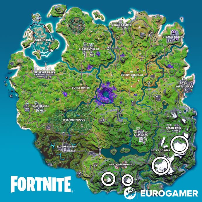 Wenn Sie in Woche 3 in Woche 3 auftreten und von der Platzierung von Boomboxen innerhalb von Gläubiger Beach verfolgt werden, platzieren Sie vier außerirdische Lichtkommunikationsgeräte an vier Standorten an der südlichen Ecke der Karte.