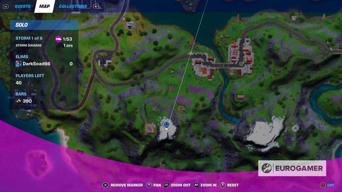 Sie sind ziemlich nahe beieinander. Je nachdem, wo sich der Sturm schließt, können Sie die Quest in nicht mehr als zwei Spielen beenden. Wir empfehlen, die Spickaxe zu verwenden, um alles in der Nähe zu brechen und Treppen zu bauen, um das Klettern zu erleichtern.