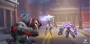 . V boji v ulicích zachránila skupinu lidí a omniky, které se dostaly pod útok nulových sektorových sil, když se znovu sešla s členy reformované Overwatch, včetně Reinhardt Wilhelm, Angela Ziegler, Cole Cassidy a Winston a Winston. . . . .