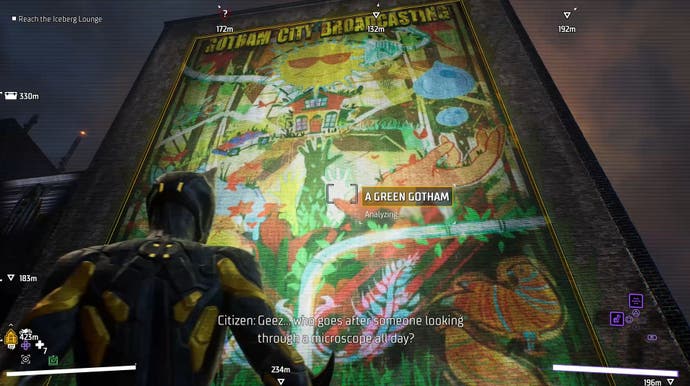 Jeden kus pouličního umění najdete ve staré okrese Gotham v Gotham Knights.
