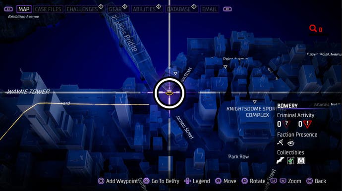 Je důležité si uvědomit, že ne všechny městské čtvrti Gotham obsahují kus pouličního umění. Naštěstí můžete snadno zjistit, které z nich dělají kontrolou mapy; Jednoduše se umístit kurzor na okres a v pravém dolním rohu se objeví kontrolní seznam sběratelských předpisů.